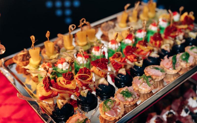 Корпоратив у стилі “Оскар” вимагав бездоганної кухні — вишуканої, витонченої, але водночас зручно поданої для формату фуршету. Ми створили меню, гідне червоної доріжки:
