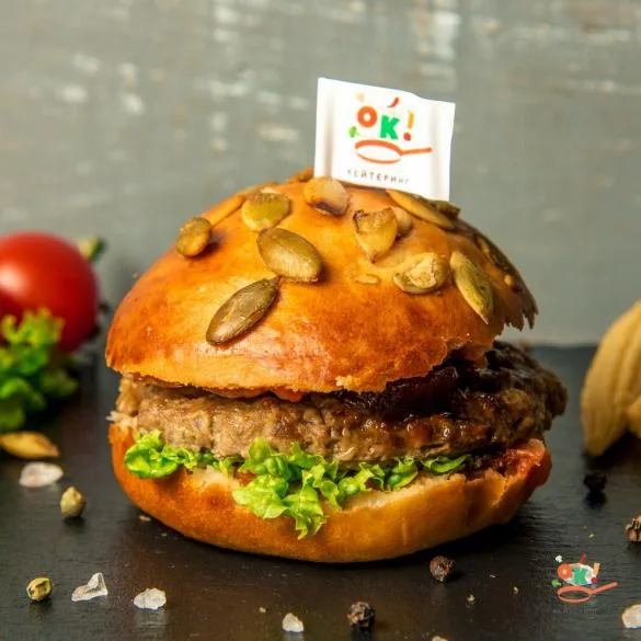 Бургер із котлетою з яловичини, карамелізованою цибулею і домашньою аджикою кількість