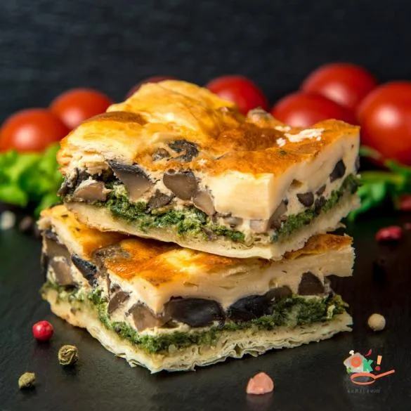 Відкритий пиріг з грибами і шпинатом