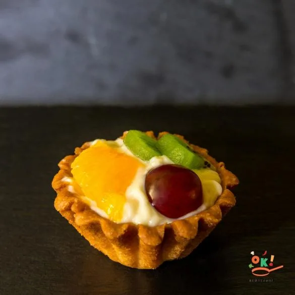 Корзинка з тіста, крем заварний з маслом, ківі, апельсин, виноград, желе для торта.