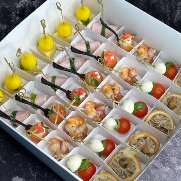 - помідор Черрі з бебі моцарелою та базиліком;