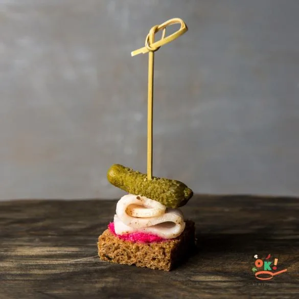 Генеральське сало на Бородінському хлібі з корнішоном і рожевим хріном