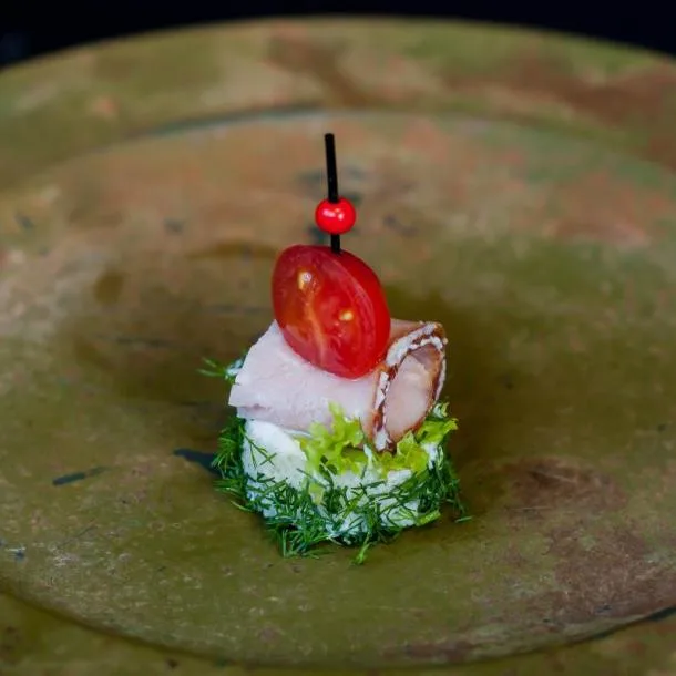 Канапе з бужениною, томатом Черрі і салатом
