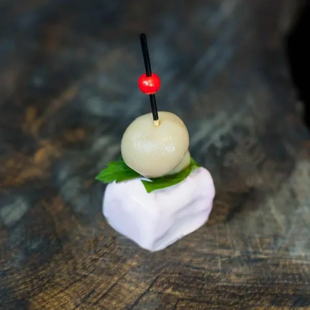 Канапе з моцарелою, томатом черрі і базиліком
