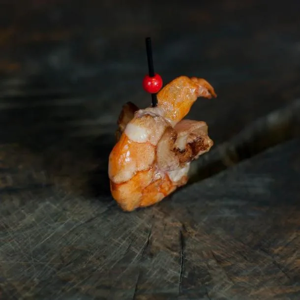 креветка тигрова, ананас, бекон.