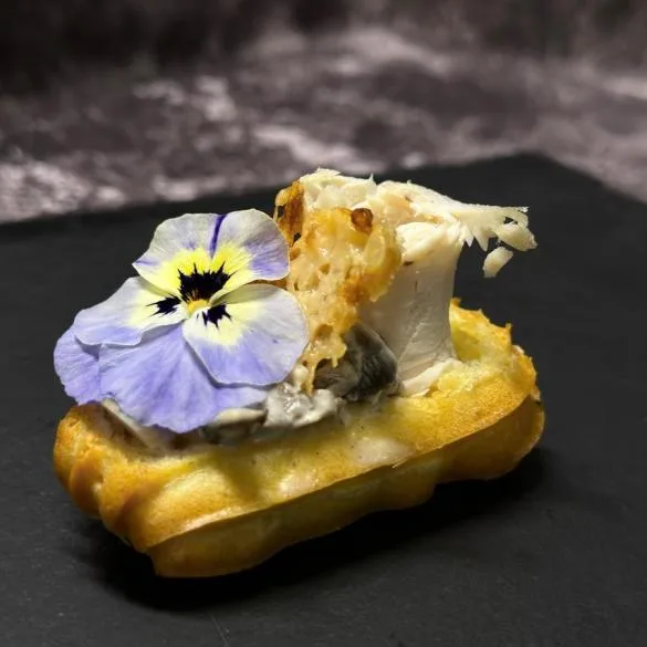Еклер з грибами та сиром Пармезан — це ідеальне поєднання ніжного заварного тіста, ароматних лісових грибів і витонченого смаку витриманого сиру. Повітряне тісто злегка хрустке зовні та м’яке всередині, що робить його чудовою основою для насиченої начинки.