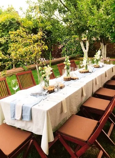 Весільний пікнік (Барбекю) – думаємо цей формат відомий всім з дитинства. Свято на свіжому повітрі, неформальна обстановка. Ідеально для невеликої молодіжної компанії. М’ясо, риба, овочі готуються на відкритому вогні, підсмажений свіжий хліб, аромат і насолода природою! А якщо врахувати, що присутнє професійне обслуговування, то задоволення тільки подвоюється.